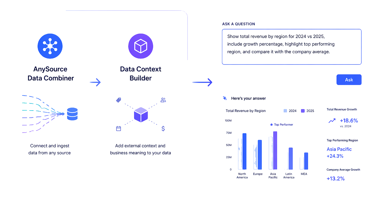 Leverage analytics to uncover patterns and trends from the Combiner’s output. Enhanced insights from the Reason Builder transform data into actionable knowledge, ready for human reasoning and visualization.